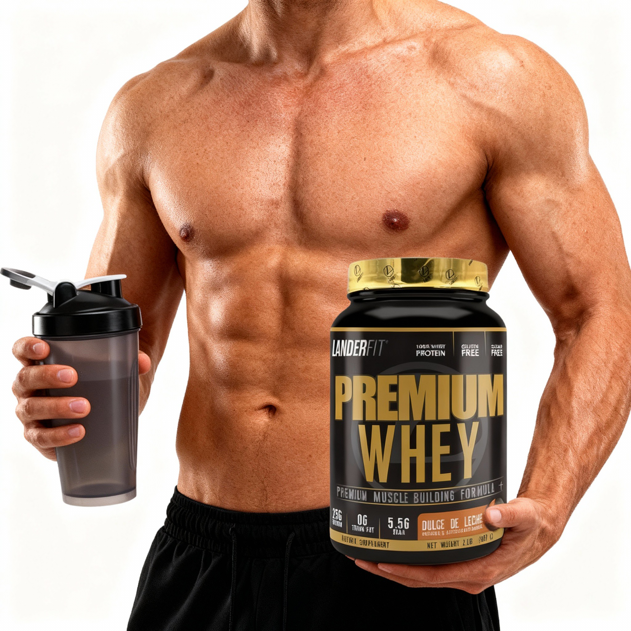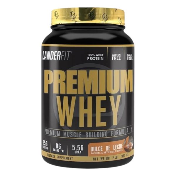 LanderFit Premium Whey en su irresistible sabor dulce de leche combina nutrición de calidad superior con el sabor clásico latinoamericano que todos amamos. Esta proteína de suero 100% pura proporciona 25g de proteína de alta calidad por porción, esencial para la construcción y recuperación muscular. Cada servicio aporta 0g de grasas trans y 5.5g de BCAAs (aminoácidos de cadena ramificada) que ocurren naturalmente en la proteína, fundamentales para la síntesis proteica y prevención del catabolismo muscular. La fórmula es libre de gluten y sin azúcar añadida, ideal para quienes mantienen un plan nutricional controlado sin sacrificar el sabor. Su presentación de 2 libras (937g) incluye dosificador para facilitar la preparación. El cremoso sabor a dulce de leche convierte cada batido en un momento placentero, perfecto para tomar después del entrenamiento o como snack proteico entre comidas. Calidad premium respaldada por LanderFit.
