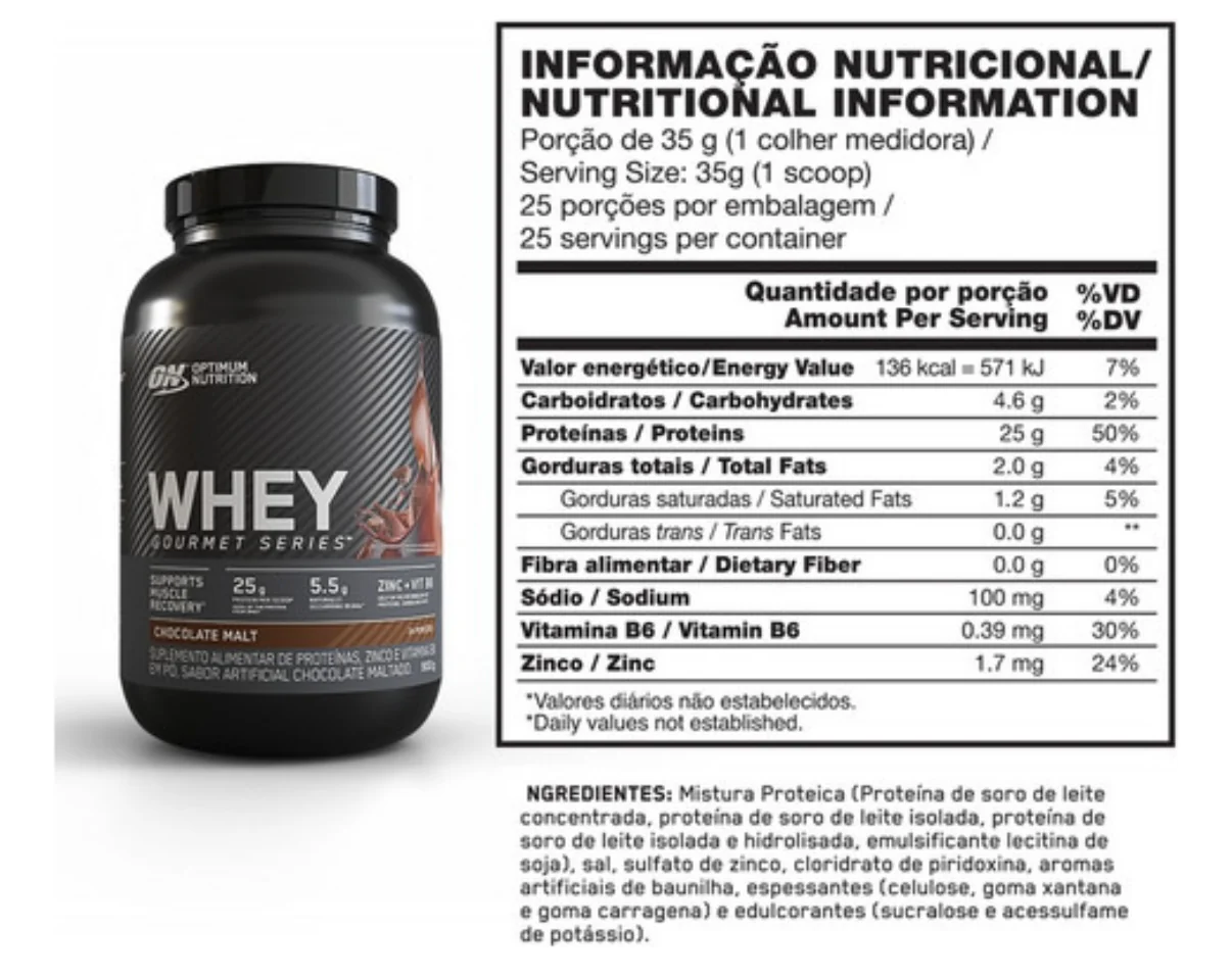 Optimum Nutrition presenta su línea Whey Gourmet Series, una proteína de suero de calidad superior con un sabor excepcional a chocolate malteado. Cada porción aporta 25g de proteína 100% proveniente del suero, junto con 5.5g de aminoácidos de cadena ramificada (BCAAs) que ocurren naturalmente en la proteína. Además, está fortificada con zinc y vitamina B6, nutrientes que ayudan en el metabolismo de proteínas, carbohidratos y grasas. Esta fórmula está especialmente diseñada para apoyar la recuperación muscular después del entrenamiento intenso. Con 24 porciones en su presentación de 900g, es la opción perfecta para quienes buscan calidad, sabor y resultados respaldados por una de las marcas más reconocidas en nutrición deportiva.